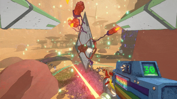 The enemies in Mycopunk are gloriously gross. Fungal blobs, biomechanical beasts, and hybrid horrors—modular creatures that pick up the weapons and limbs of their fallen. You’ll shoot one’s gun arm off, only to watch another scuttle over, attach it, and start blasting you with it.